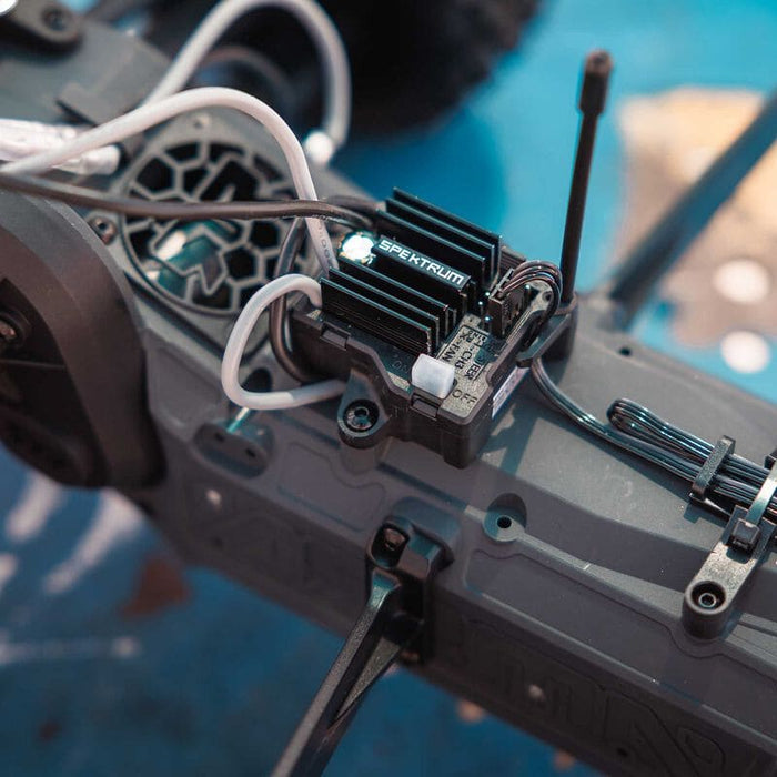 Get bashing quickly with short 2-3 hour charge times — keep bashing longer with extended run times. The included, high-capacity Spektrum Smart 7-cell 3300mAh NiMH battery begins safe charging automatically when connected to the Spektrum S120 USB-C Smart Charger. When it's time to upgrade for more bashing power, the charger and Spektrum 2-in-1 40A ESC/receiver unit are already compatible with 2S Smart LiPo batteries.