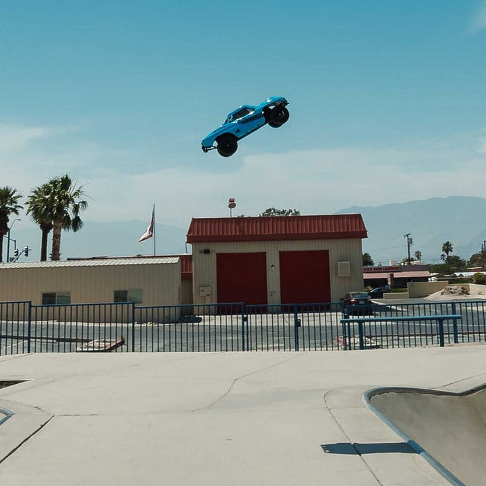 Whatever the conditions, you can bash with confidence thanks to the durability of the ARRMA FURY composite chassis. The independent suspension, oil-filled shocks, and adjustable ride height combine to keep the ride smooth over rough terrain. Metal gears in the differential reliably move power from the motor down to the all-terrain tires for unstoppable traction.