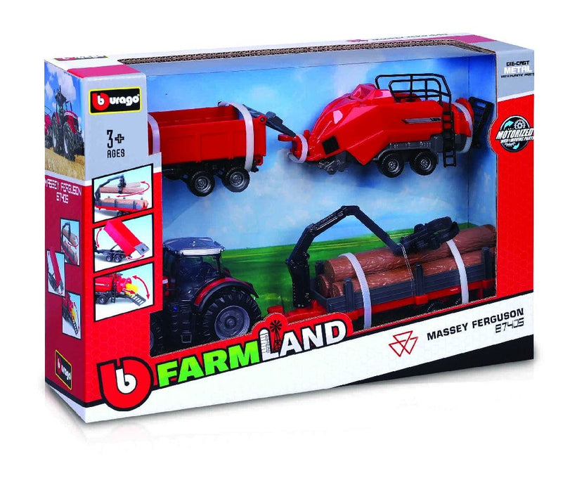 Bburago Farmland 10cm Moto. Tractor with 3 Trailers Gift Set (6 Pack)