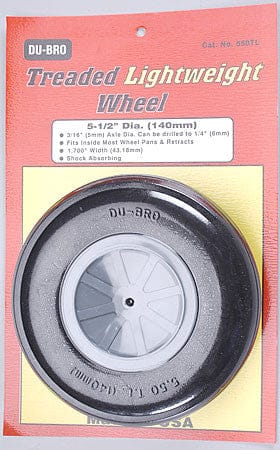 550TL Tire Width 1.700 (43.18mm). Our NEW Large Scale Treaded Lightweight wheels are substantially lighter than other aircraft wheels available. These lightweight wheels feature a foam interior yet have a tough and rugged exterior skin for durability. Excellent for paved runways! Hubs come with 3/16 (5mm) axle dia. opening and can be drilled out to 1/4.
