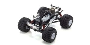 Built on a pickup truck chassis, large diameter tires and big engines with massive horsepower were installed by fun-loving American off-roaders to create the monster truck. These ever-popular monster trucks can be seen on specially-made racing circuits or jumping rows of cars in stadiums across the USA. Many R/C monster truck models have been produced over the years. First among equals is the legendary 1/8 scale USA-1 that embodied the might of American trucking power during the 1980's and 90's. Officially licensed by Kyosho in the 1990's, the R/C model uniquely captured the power and glory of the USA-1. Now it's 'comeback-time' for the USA-1, with modern chassis and drivetrain technology, upgrades unique to the USA-1 throughout, and a newly-designed 'ULTRA SCALE BODY' with form and detail finished to display-model standards. The iconic American flag graphic emblazoned on the body makes your heart swell with pride! The chassis features shaft-driven 4WD and 5-link suspension based on the Mad Crusher 2.0 & FO-XX models. Most of the suspension components have been uniquely upgraded and reinforced for the USA-1 at each point to handle the powerful new KE25SP2 engine, and the rigors of monster trucking. A 3-speed automatic transmission produces dynamic acceleration, which is enhanced by a true suspension system to produce "scale" running characteristics worthy of the prestigious USA-1, and make you feel like a monster truck driving god. Released as a pre-assembled Readyset, the USA-1 is almost ready for action straight out of the box.