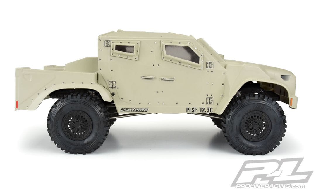 Pro-Line is proud to introduce a combat-ready body for scale crawlers that is ready to strike fear into the hearts of the enemy: the Strikeforce clear body. Based on full-size light combat vehicles used by the armed forces, this body is perfect for your next military-themed build. The Strikeforce provides a blank canvas for completing your mission directive, whether it requires a general-purpose military vehicle, a utility vehicle, or even a weapons carrier.