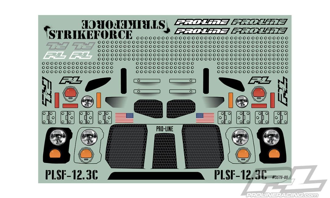 The Strikeforce is molded in our durable .060" polycarbonate and comes with window masks, Paint-then-peel overspray film, and decals. Complete your Strikeforce with Pro-Line's Military-inspired paint set (PRO632304)! Now is the time to strike - get your own Pro-Line Strikeforce body for your 12.3" Crawler now!