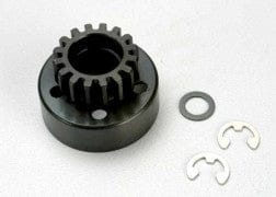 TRA5215 Clutch bell (15-tooth)/5x8x0.5mm fiber washer (2)/ 5mm eclip(requires 5x11x4mm ball bearings part #4611) (1.0 metric pitch)